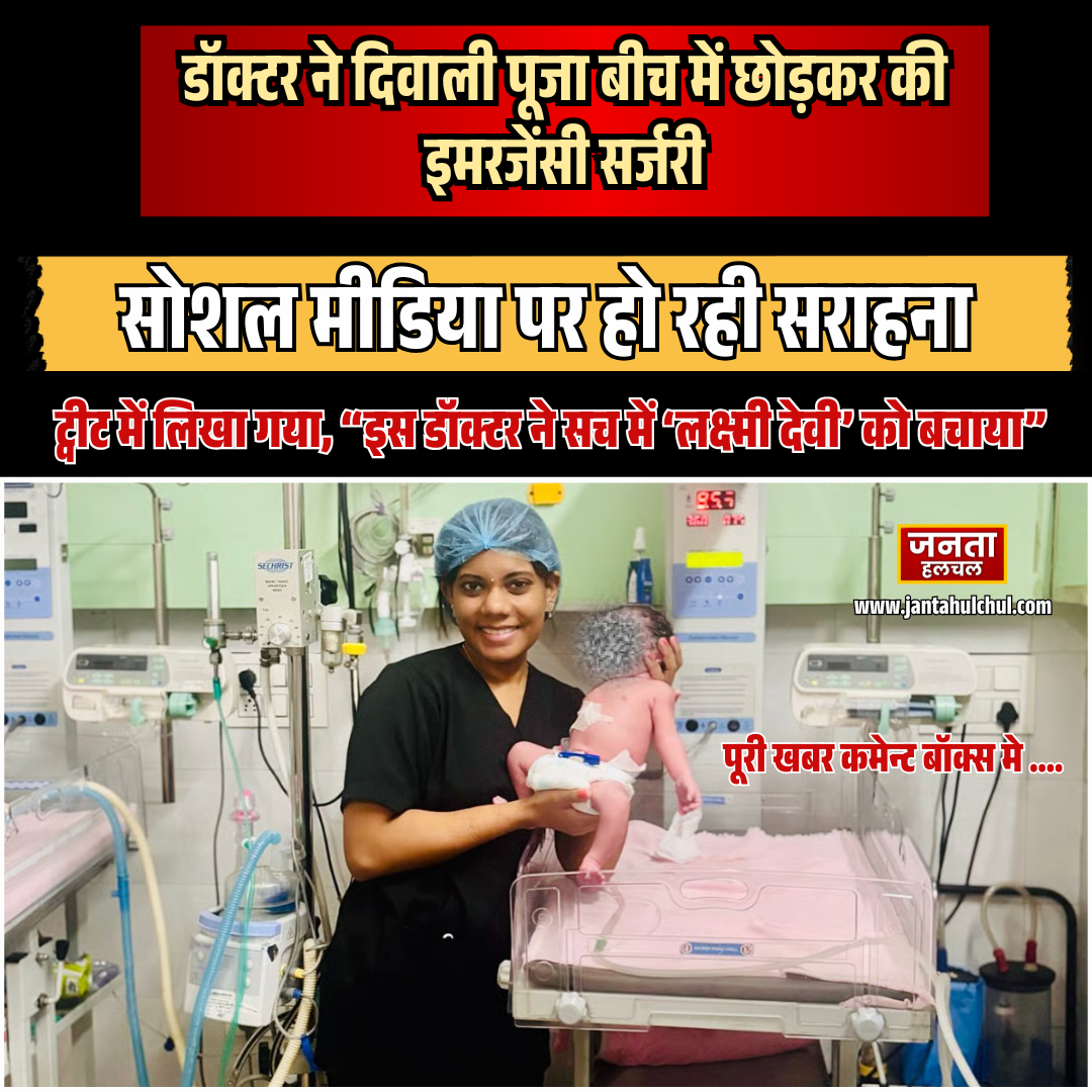 दिवाली की रात जब ज्यादातर लोग पूजा-पाठ और जश्न में व्यस्त थे, उसी वक्त एक डॉक्टर ने इंसानियत की मिसाल पेश की। एक वायरल ट्वीट के मुताबिक, एक महिला डॉक्टर ने अपनी दिवाली की लक्ष्मी पूजा बीच में छोड़कर इमरजेंसी ऑपरेशन किया और मरीज की जान बचाई।